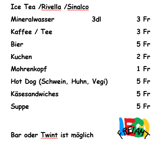 Für den Hunger und Durst bietet unser Verpflegungsteam in der kleinen Festwirtschaft einiges.